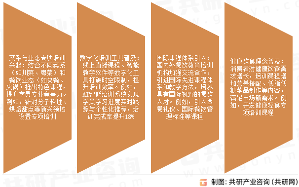 消费者对餐饮质量和办事要求日益提高,餐饮企业为提拔合作力,加大员工培训投入,鞭策培训需求增加。餐饮行业创业门槛相对较低,创业者需通过培训获取店肆运营、营销筹谋等技术,为培训行业带来增量市场。